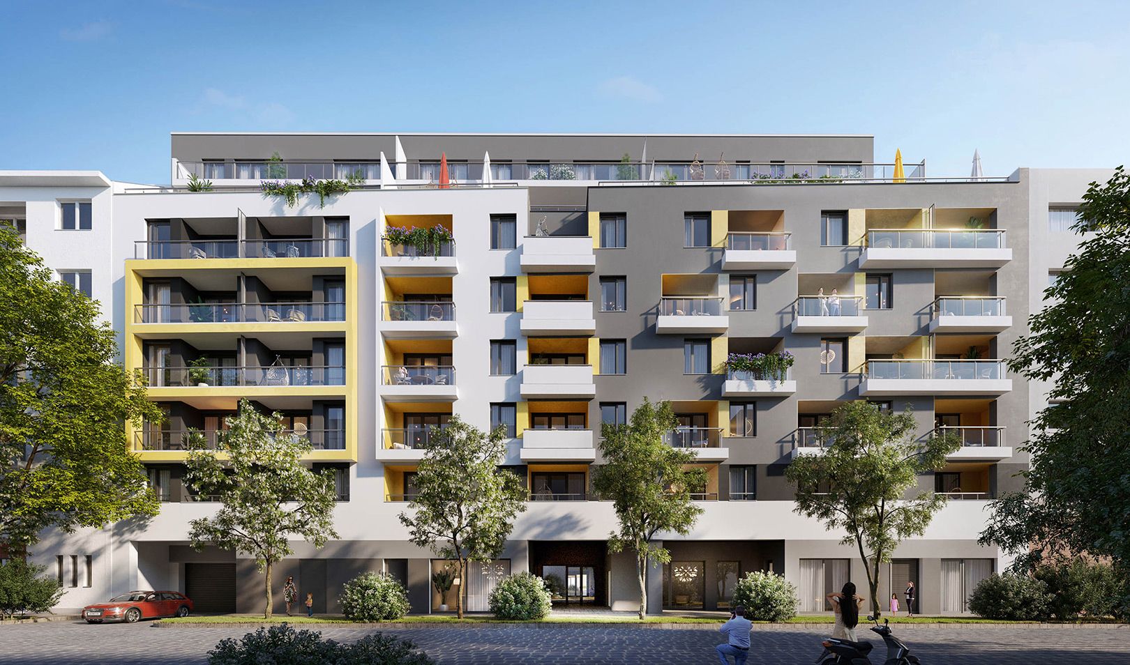 A Biggeorge Property Zrt. megrendelésére a Groundup Kft. építette a lakóparkot a XIII. kerületben. Erős hő- és hangszigetelésre képes PVC nyílászárókat szállítottunk a projekthez, amelyek az épület homlokzatán kerültek telepítésre.