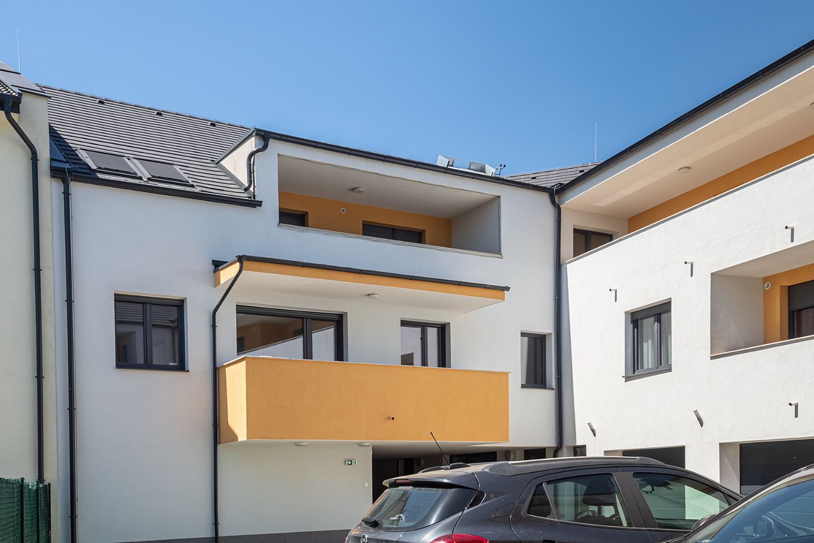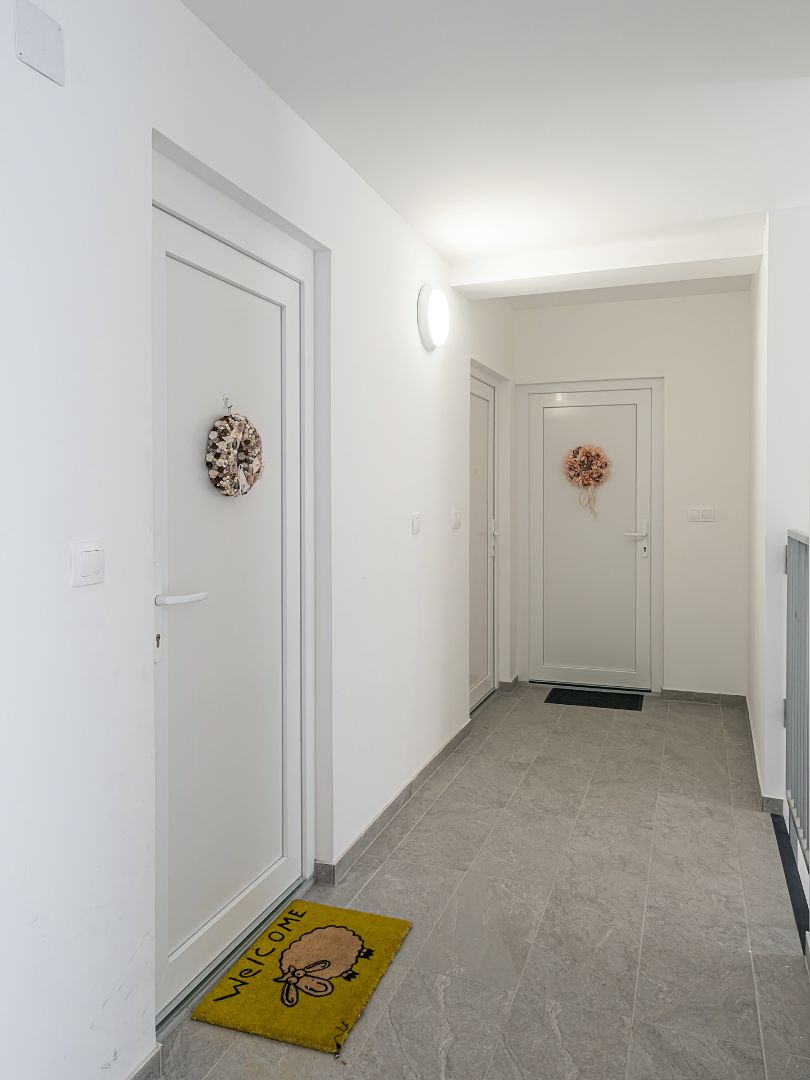A székesfehérvári lakópark okos luxuslakásainak kialakítását PVC bejárati ajtókkal, ablakokkal és erkélyajtókkal támogattuk. A nyílászárók háromrétegű üvegezése kiemelkedő hő- és hangszigeteléssel biztosítják a lakók csendes nyugalmát és kényelmét az esztétikus környezetben.
