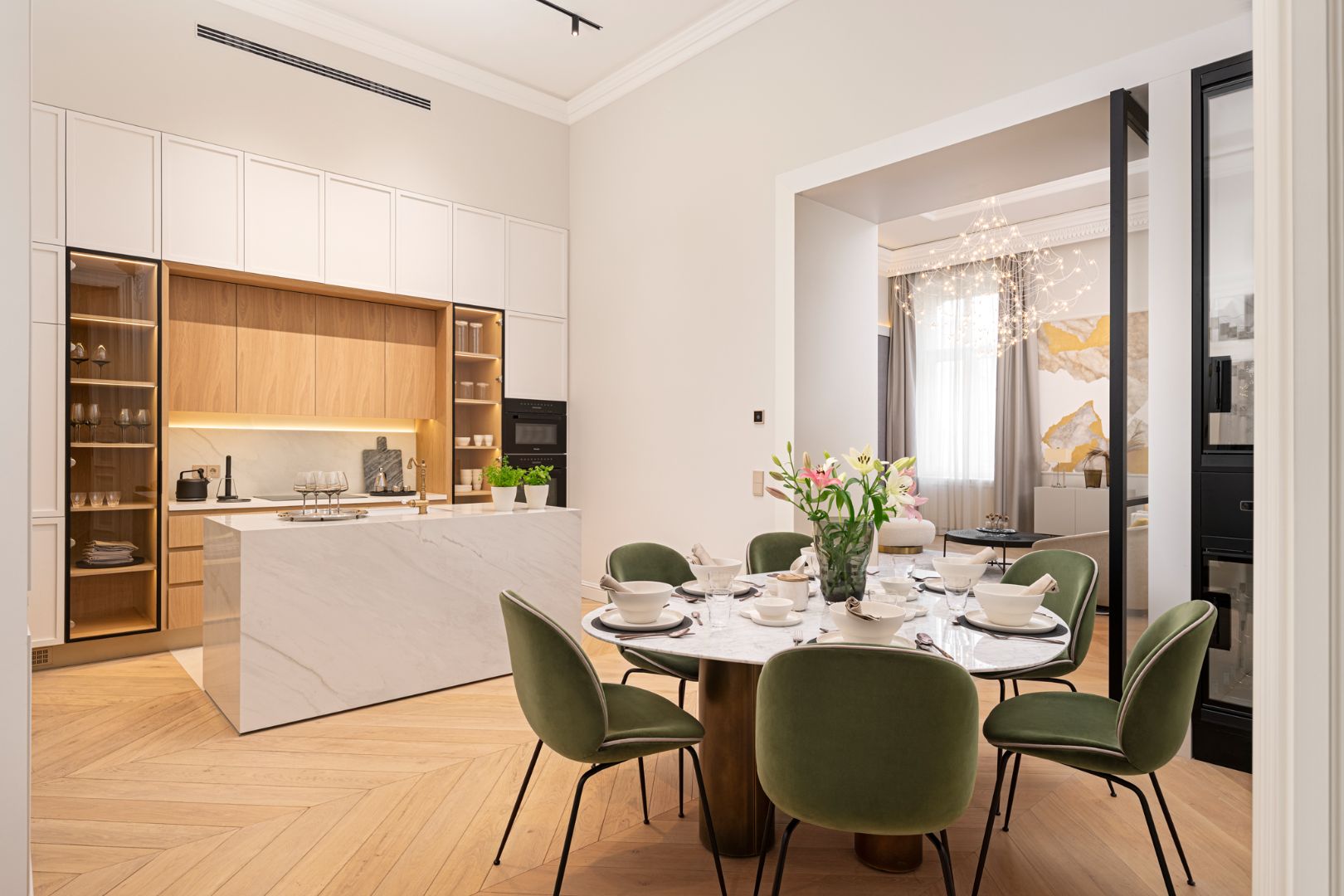 A mai minőségi elvárásoknak megfelelő sűrű osztású, fehér, alumínium nyílászárók telepítésével támogattuk a projektet Budapest VI. kerületében. Kiemelt figyelem fordult arra, hogy illeszkedjenek a műemléki homlokzatok klasszikus megjelenéséhez, azonban modern technológiával hatékony hő- és hangszigetelésre legyenek képesek.